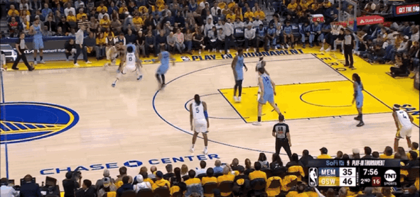 灰熊主动犯规库里,库里上罚球线2罚全中,勇士领先3分并只留给灰熊5.4秒,灰熊叫出暂停布置最后战术。暂停回来,灰熊出现致命5秒违例,错失将比赛拖入加时的机会,最终勇士险胜灰熊,拒绝20分逆转挺进季后赛。