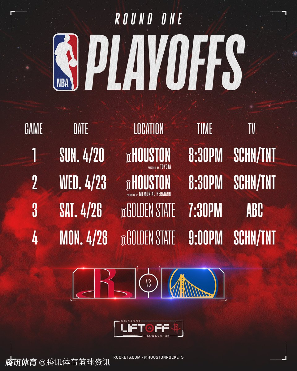 G5(若有需要,5月1日) :火箭主场对阵勇士。