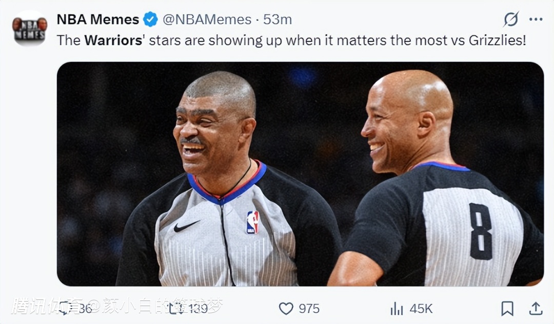 美媒都说勇士在关键时刻有裁判的帮助力克灰熊。