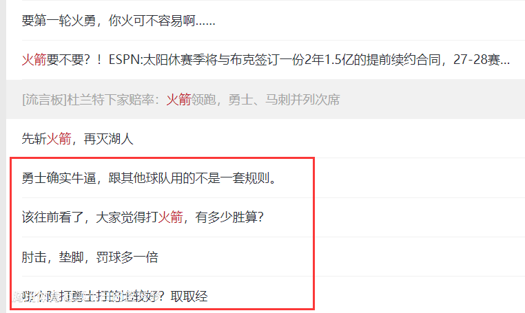 球迷们纷纷担忧火箭队首轮打勇士的尺寸:1.火箭全区已经开始心慌;