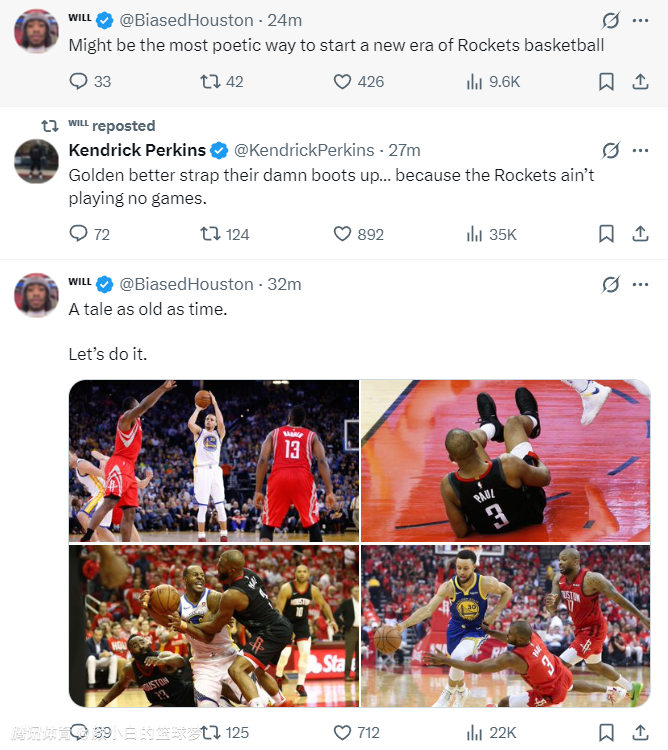 火箭官方晒首轮赛程!球迷纷纷担忧vs勇士尺度 休媒高呼战胜恶魔