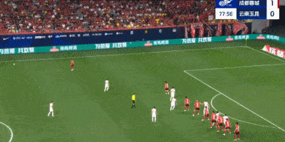第24分钟,云南外援内内主罚任意球到禁区内,德尔加多头球解围却变成攻门,皮球击中左侧立柱弹出,惊出蓉城一身冷汗。