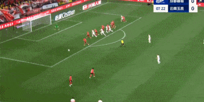 第8分钟,云南主罚前场左侧任意球到小禁区附近,马丁内斯头球攻门稍稍偏出。