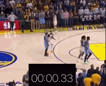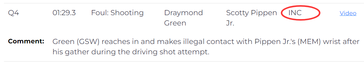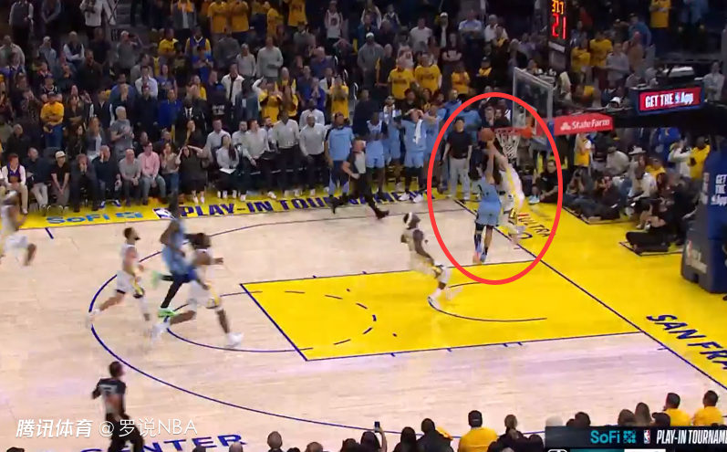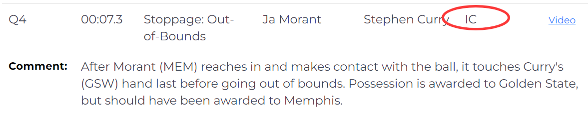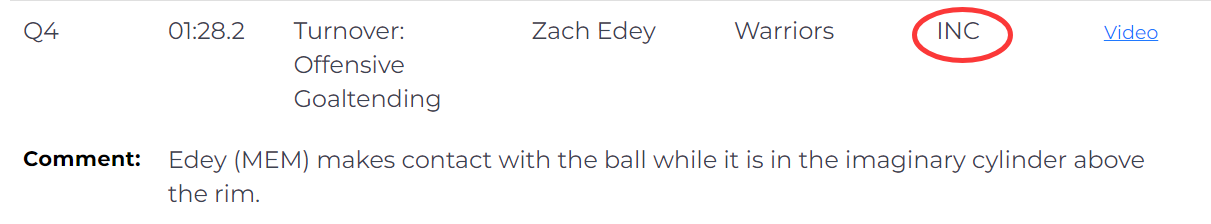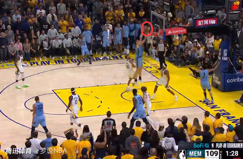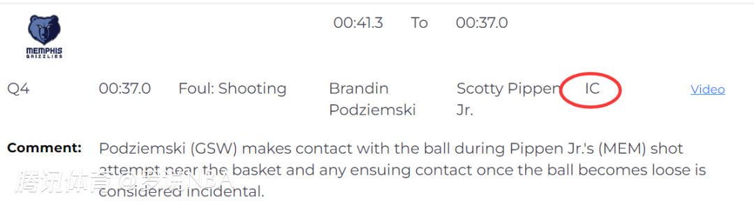 第二次也是漏判,发生在距离比赛结束还有1分28秒,就在上面这个回合,小皮蓬上篮不中,伊迪跟进补扣得分。裁判报告显示,这一球是进攻干扰球,球还在篮筐上方圆柱体范围内时,伊迪触碰了球,进球本该无效。灰熊获利,勇士吃亏。