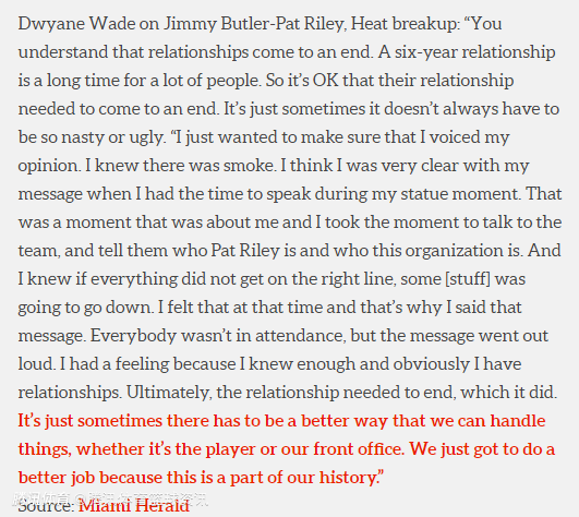 韦德评巴特勒莱利决裂:关系结束是常事 处理方式应更体面