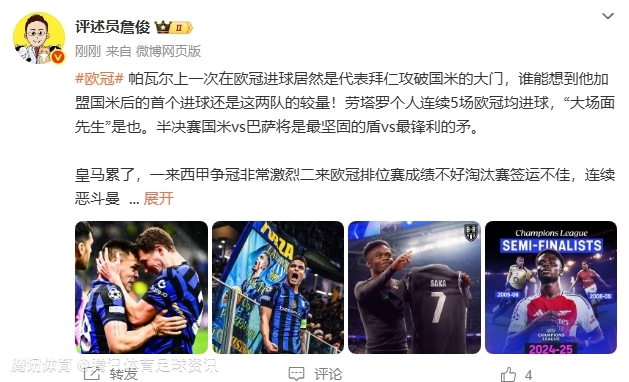 媒体人詹俊也是发文表达了自己对于欧冠4强的看法。