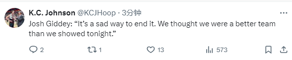 吉迪:以这种方式出局令人难过 我们本应打出更好表现