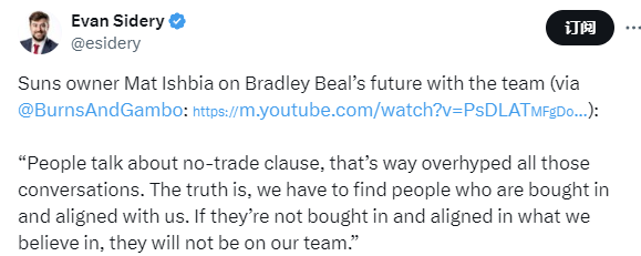 2025-04-18 10:20北京时间4月18日,太阳队老板伊什比亚接受采访,谈到了布拉德利-比尔的未来。
