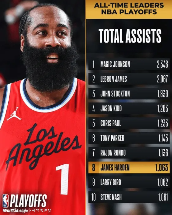 此役哈登连续创造纪录:1.季后赛助攻伯德升第八;