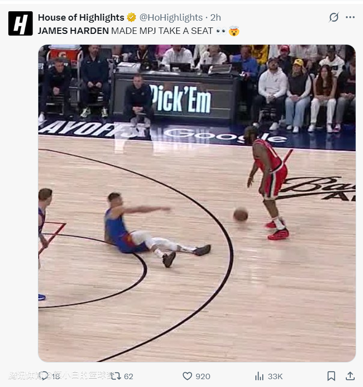 哈登此役整场比赛的表现都十分出色,他全场比赛打了42分48秒只出现了2个失误,他还有晃倒小波特的高光时刻,在末节最后18秒他还完成了准绝平帮助快船进入加时赛。