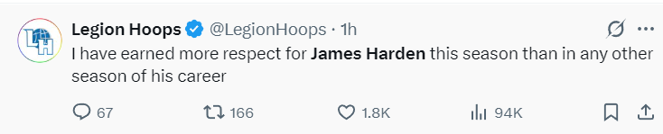 美媒LH:本赛季以来,我对詹姆斯·哈登的印象比以往任何一个赛季都要好,对他也有了更多的尊重。