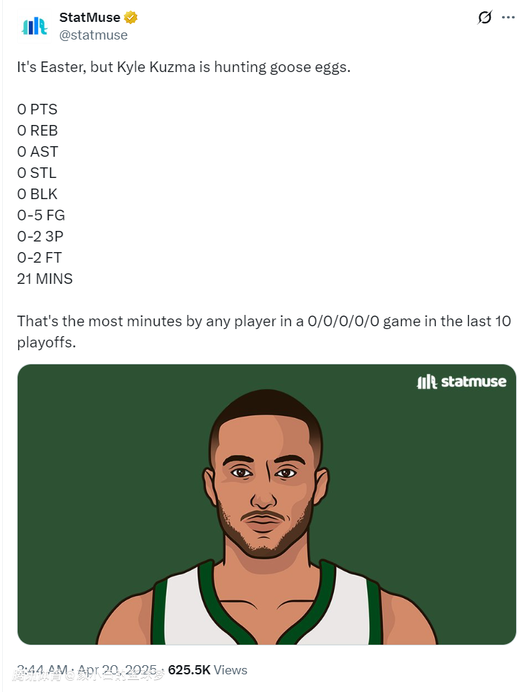 库兹马是本赛季雄鹿用克里斯-米德尔顿、AJ-约翰逊、2028年首轮互换权送到奇才换来凯尔-库兹马、帕特里克-鲍德温、次轮选秀权,而且库兹马是拿着4年1.02亿的高薪,他季后赛首战就这?