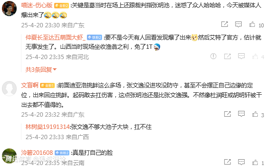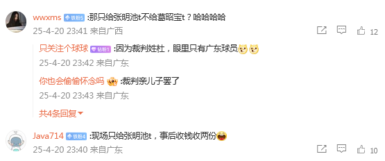 有球迷点评说道:赛后倒是能看清冲上场的是两个人了,赛场上裁判眼睛里只有张明池。