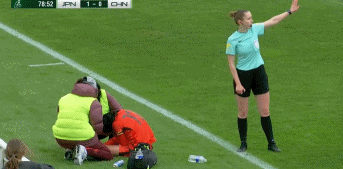 补时第3分钟,陈嘉妮在边线附近放铲,随后被对手重重撞到了后脑、颈部,痛苦倒在了草坪上。主裁判并未向对手出示黄牌,这让U16女足的教练组非常不满。