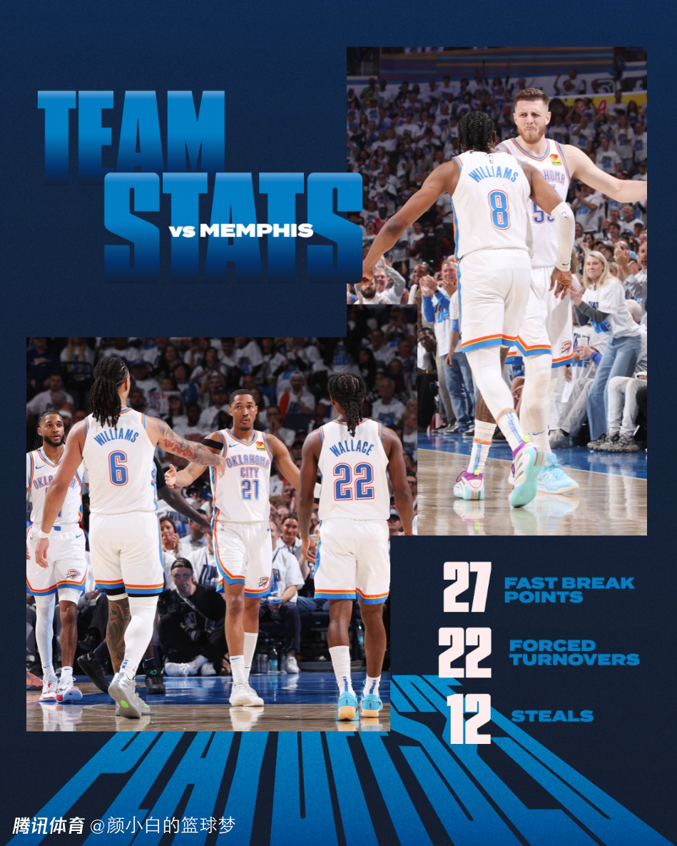 此役雷霆创造多项纪录:1.51分是雷霆队史季后赛最大分差;