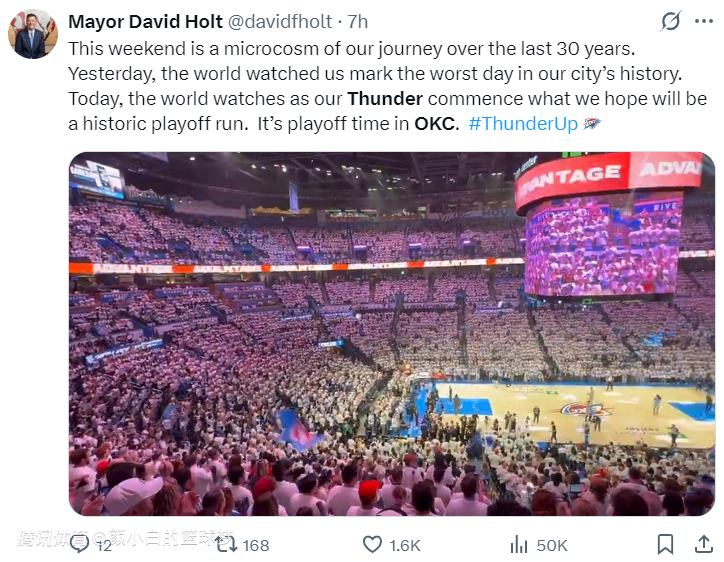 雷霆记者写道:过去30年我们都在经受考验,外界甚至依旧不看好我们,如今,全世界都看到了我们完成载入史册的一天,这是一个全新的时代,俄克拉荷马的季后赛时刻已经降临。