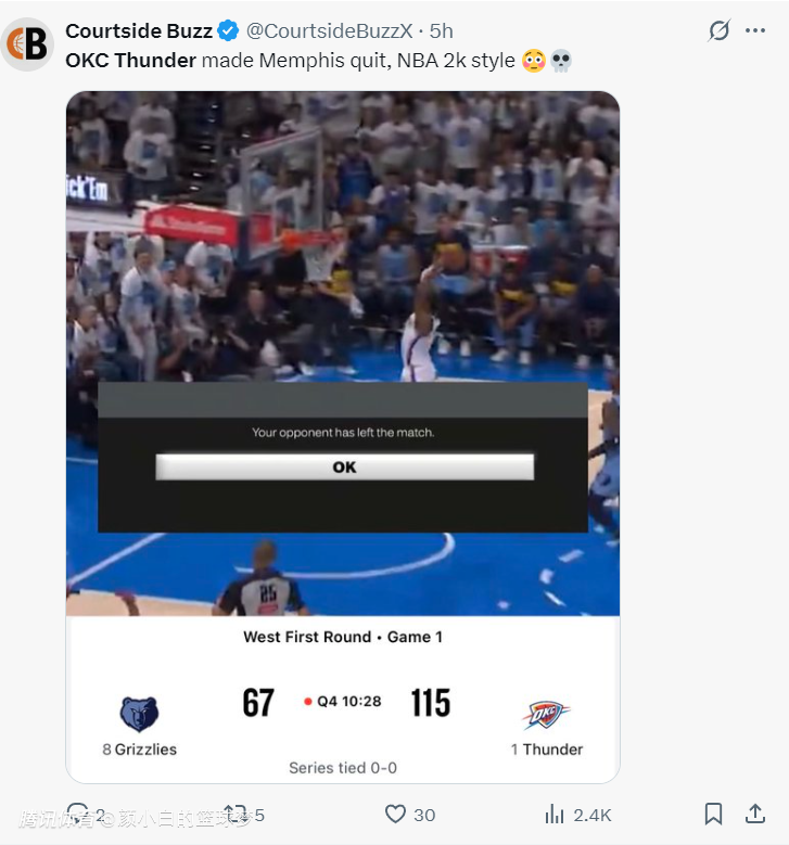 2025-04-21 09:10北京时间4月21日,NBA季后赛,俄克拉荷马雷霆131-80大胜孟菲斯灰熊,大比分1-0领先。这场比赛的胜负没那么难预料,但谁也想到是51分的差距!灰熊刚刚打了两场附加赛,他们还伤了核心莫兰特不敌联盟第一是正常的,可输50+还是让人难以信服,最关键的是莫兰特末节还在替补席发笑。