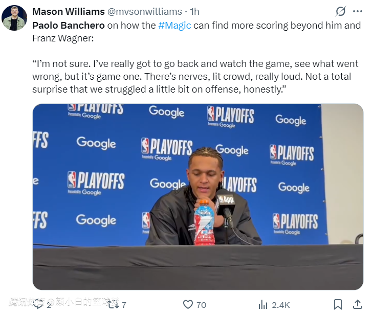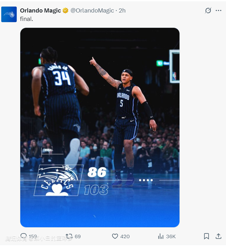2025-04-21 09:10北京时间4月21日,魔术客场86-103惨败凯尔特人,大比分0-1落后。这场比赛的胜负没有那么难预料,毕竟班凯罗所在的魔术刚刚打完附加赛,而在波士顿的绿凯以逸待劳全队健康状态优异,加之两支球队在进攻端的天赋差距巨大,魔术在客场第一场难免有些局促。