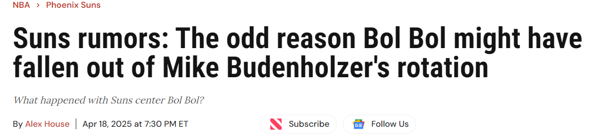 2025-04-21 18:00北京时间4月21日,名记Chris Haynes在直播节目中,透露了太阳队没有给波尔-波尔更多机会来证明自己的原因。
