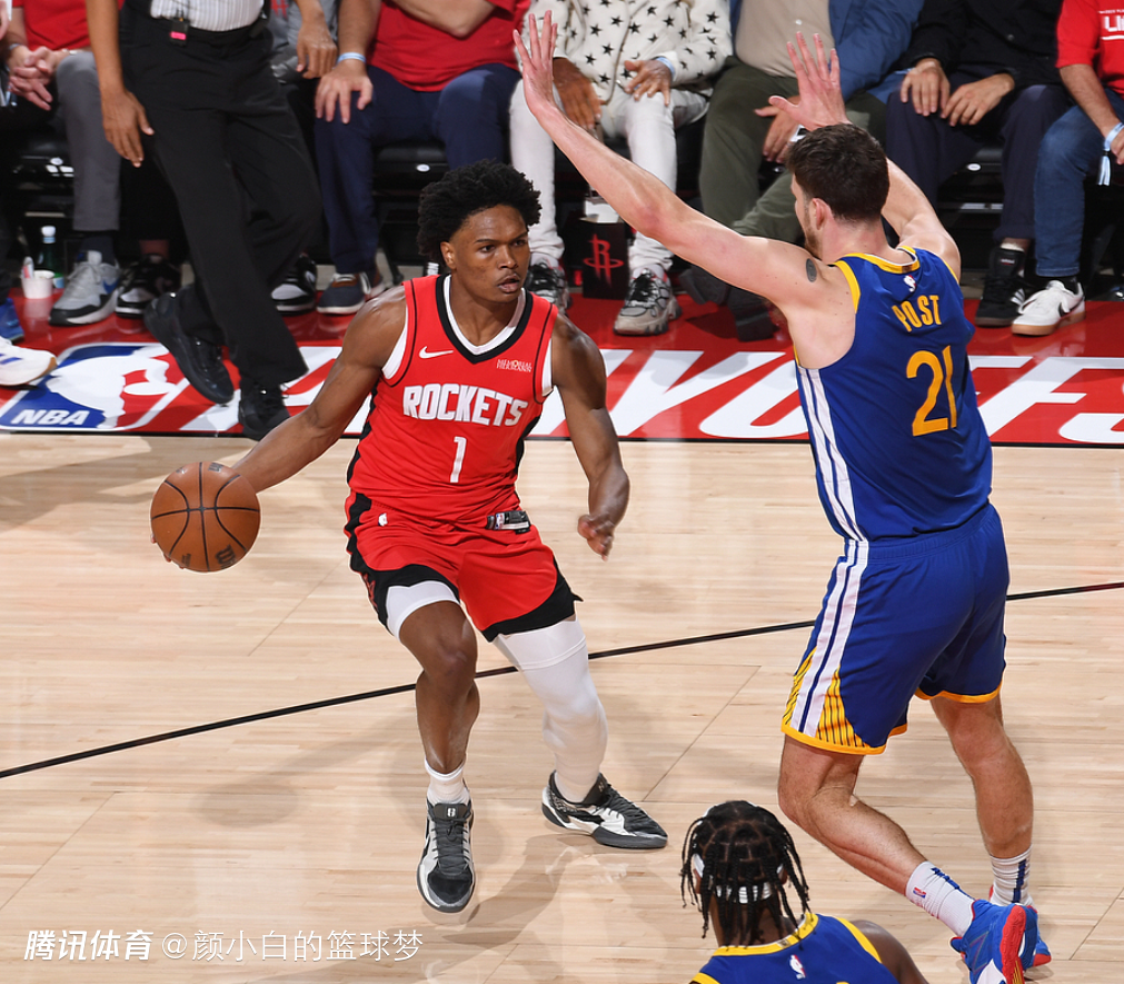 2025-04-22 10:20小贾伦-史密斯对阵勇士一战25分钟,3中3,三分1中1,罚球4中4,拿到11分6篮板1抢断1盖帽,命中率100%,真实命中率115.5%,美中不足是有4个失误,但他的表现的确比先发的阿门-汤普森与狄龙-布鲁克斯出色,而且末节那一波19-5他居功厥伟。