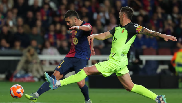 2025-04-23 05:40北京时间4月23日凌晨,西甲第33轮中,巴萨主场1-0小胜马洛卡,取得联赛三连胜,领先少赛1场的皇马7分继续领跑。奥尔莫打入全场唯一进球,加维中柱,巴萨全场射门40次。
