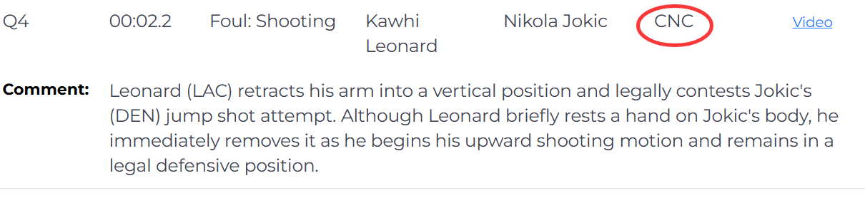 裁判报告也对小卡的最后一防给出解释。此前有人提出小卡这一次防守是否有犯规的嫌疑。裁判报告解释道:快船的莱昂纳德将手臂收回至垂直状态,以合规的方式对掘金约基奇的跳投进行了干扰。尽管莱昂纳德的手在约基奇的身体上短暂停留了一下,但在约基奇开始向上做出投篮动作的同时,他马上移开了手,并且始终保持着合规的防守位置。这是一次没有犯规的防守。