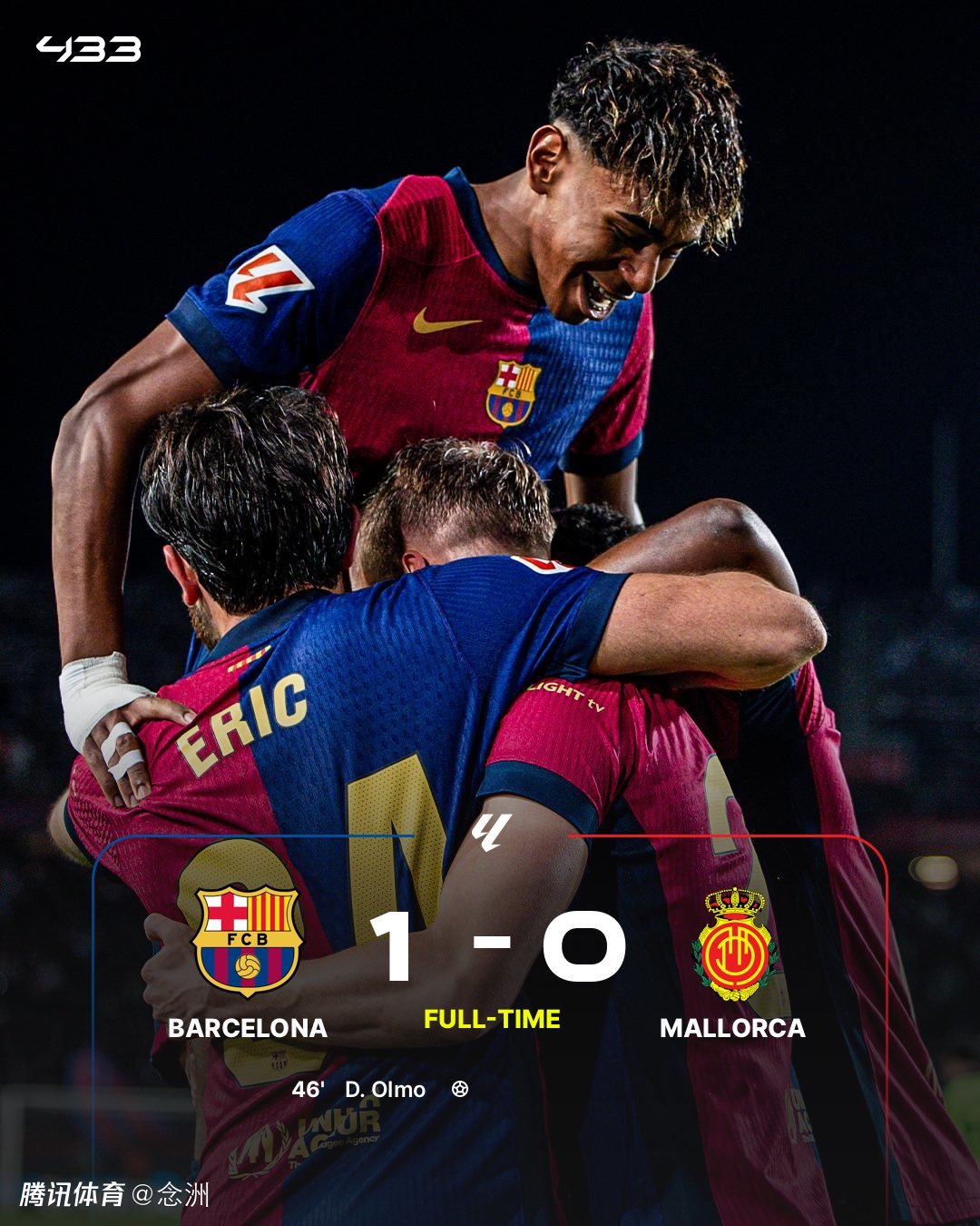 西甲第33轮,巴萨主场1-0马洛卡,联赛3连胜,先赛情况下领先皇马7分。奥尔莫中柱,埃里克-加西亚助攻奥尔莫破门,亚马尔失单刀。