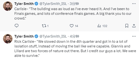 卡莱尔说道:““我们在第四节节奏变慢,陷入了大量单打战术,没有像我们本能够做到的那样去转移球。扬尼斯(字母哥)和利拉德在场上是两股不可阻挡的力量。但我要高度赞扬我们的球员,我们成功挺了过来。”