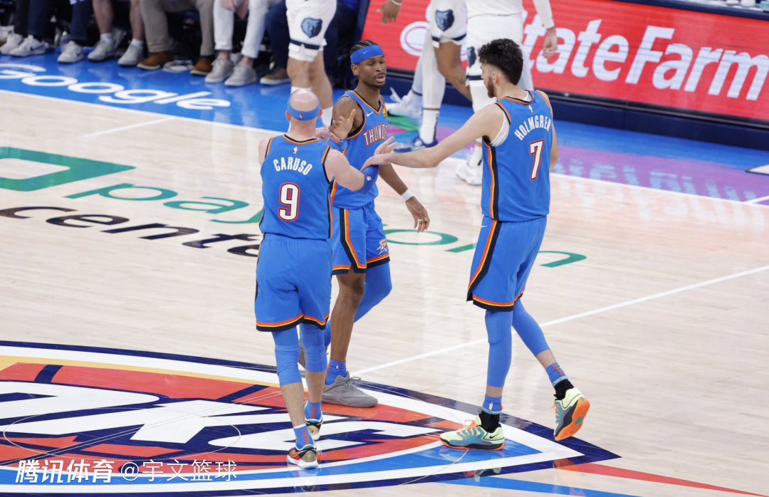 雷霆4人上双,亚历山大27分8篮板5助攻,杰伦-威廉姆斯24分6篮板5助攻,霍姆格伦20分11篮板5盖帽,卡鲁索13分4篮板3抢断