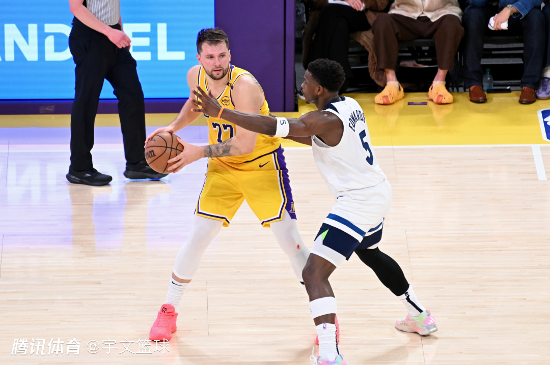 东契奇31+12+9,詹姆斯21+11+7,爱德华兹献逆天隔扣,湖人拒绝森林狼22分逆转。