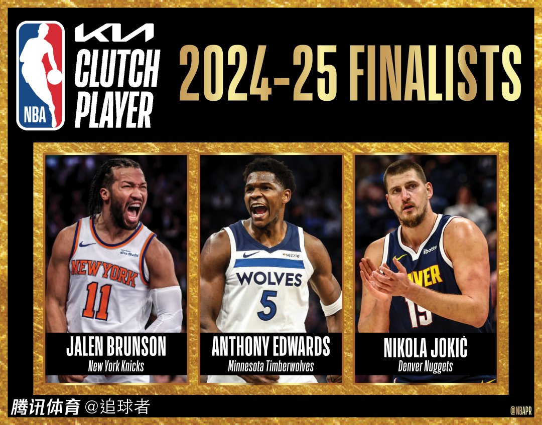 2024-25赛季年度最佳关键球员的投票结果,布伦森获得70张第一选票,24张第二选票,4张第三选票,最终拿到426分;约基奇26张第一选票,58张第二选票和8张第三选票,总共312分;爱德华兹2张第一选票,5张第二选票和22张第三选票,总共47分。