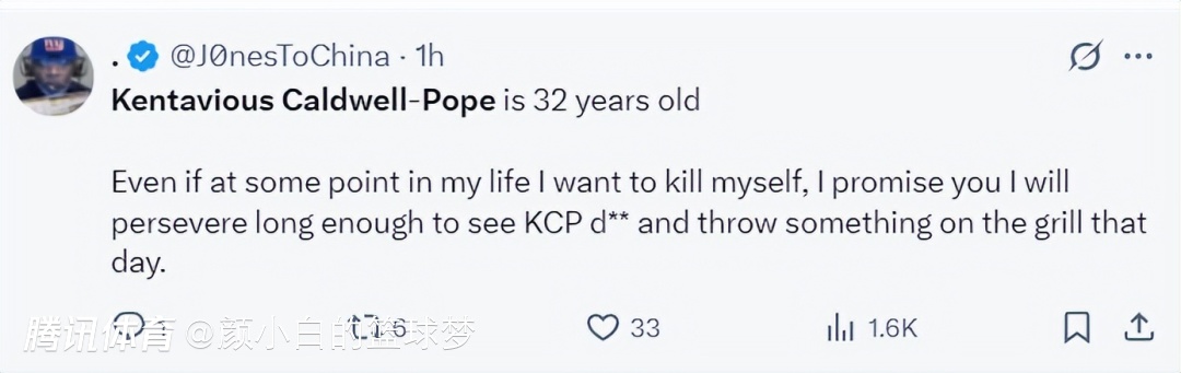 美球迷:就算我的生命在某个时刻要消散,我都会先朝着KCP开炮,并把他架在火架上烘烤。