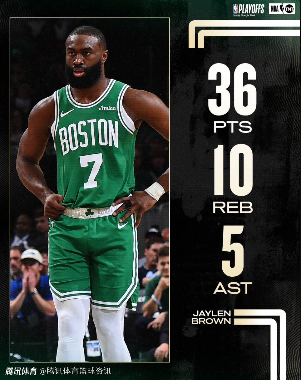 比肩塔图姆!布朗36+10+5率队取胜:季后赛得分30+场数超麦克海尔