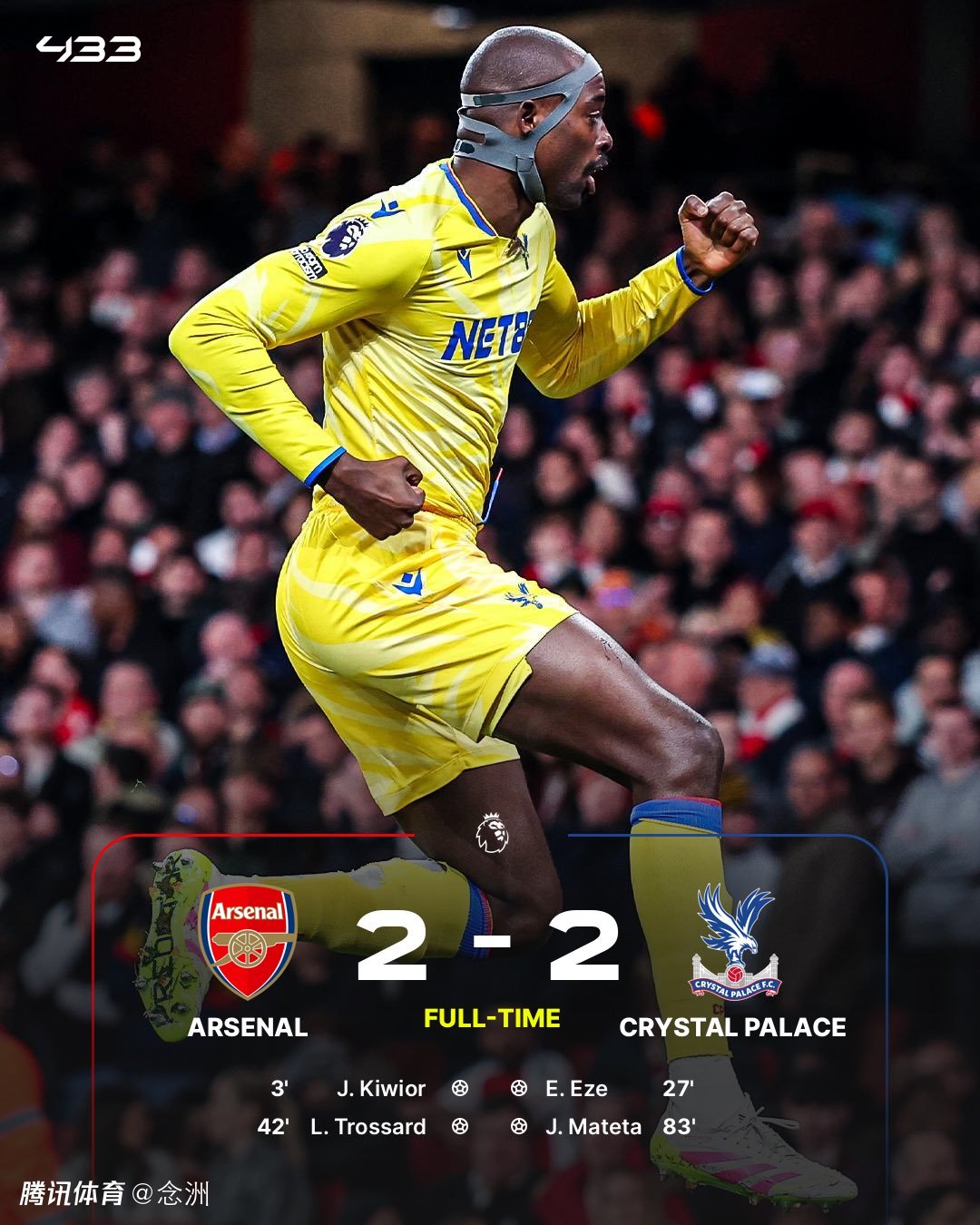 2025-04-24 14:30英超第34轮,阿森纳2-2战平水晶宫,这样一来,利物浦只需在本周末战平热刺,就可以提前四轮夺得冠军。