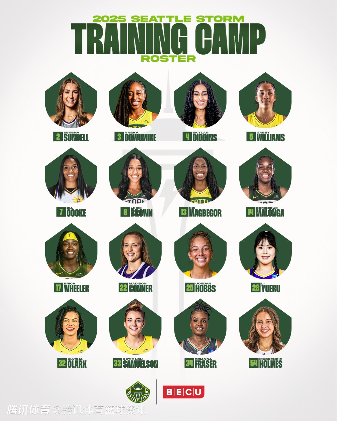 西雅图风暴队公布季前赛训练营名单:李月汝在列 将继续身披28号球衣