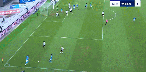 比赛第49分钟,深圳新鹏城开出战术角球,杜加利奇头球攻门被隋维杰化解。