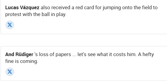 而根据马卡报等多家媒体的突发报道,共有3名皇马球员因和裁判冲突吃到红牌。除了吕迪格之外,还有巴斯克斯以及维尼修斯。
