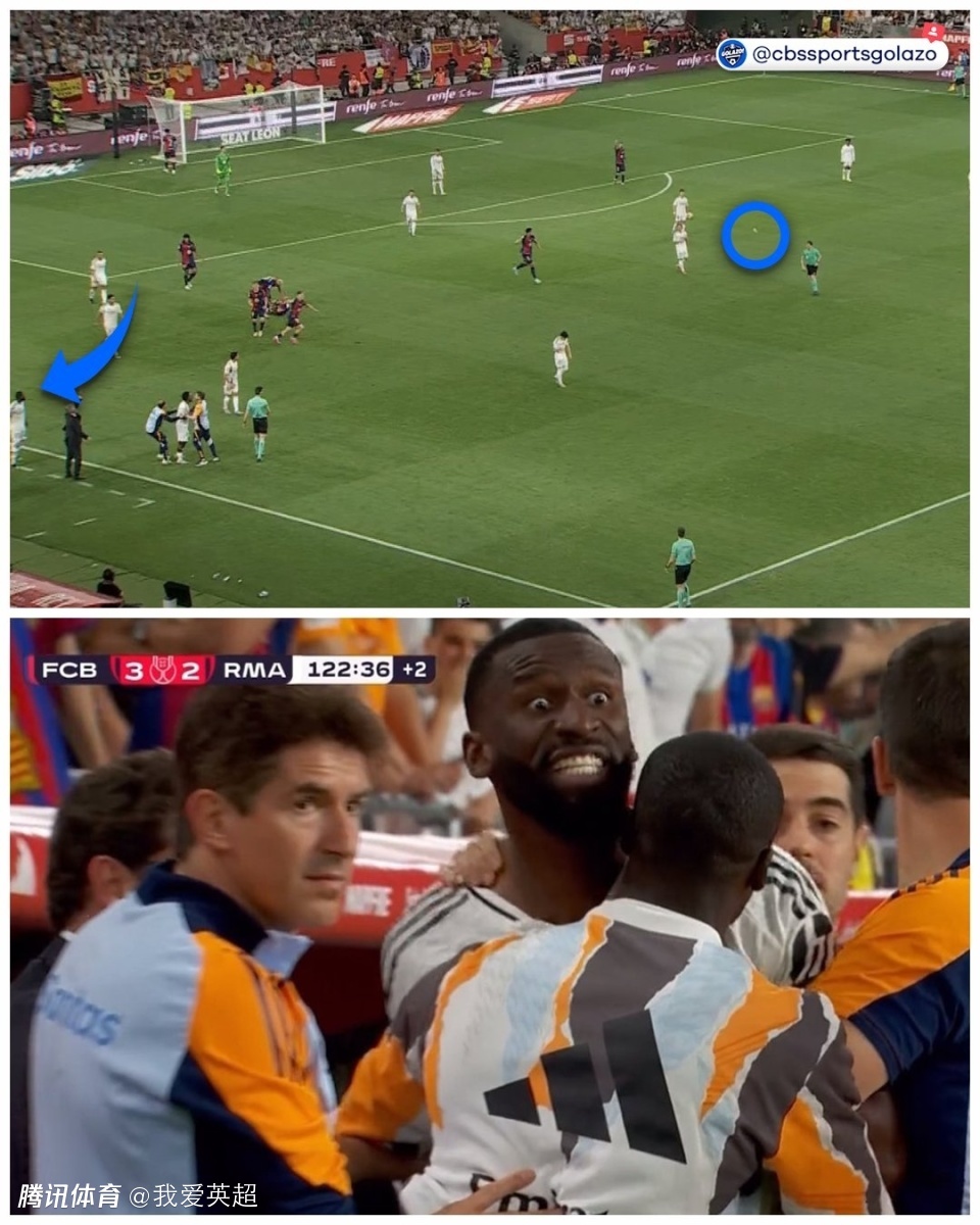 吕迪格之所以暴走,很有可能与姆巴佩禁区内倒地未获点球有关。当时比赛进行到第119分钟,当时姆巴佩即将在禁区完成单刀射门时,被加维铲倒,主裁德布尔戈斯却拒绝判罚点球,并且吹罚迪亚斯越位在先。如果皇马能获得点球并且罚进压哨绝平,比赛走势或许就完全不一样了。