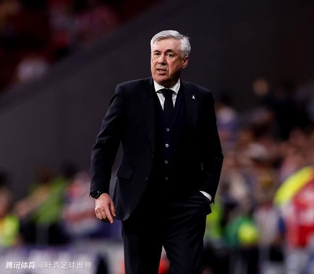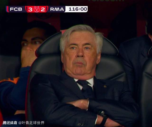 主帅安切洛蒂瘫坐在教练席上,一脸的失望;