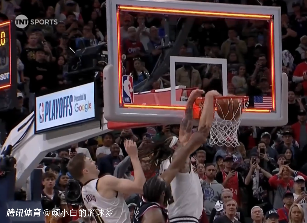 掘金为约基奇画了一个战术,约基奇歪着身体三分偏了,但戈登飞起来0.1秒补扣绝杀。鲍尔默从兴奋到无奈摇头,小卡的两个三分偏出很致命。