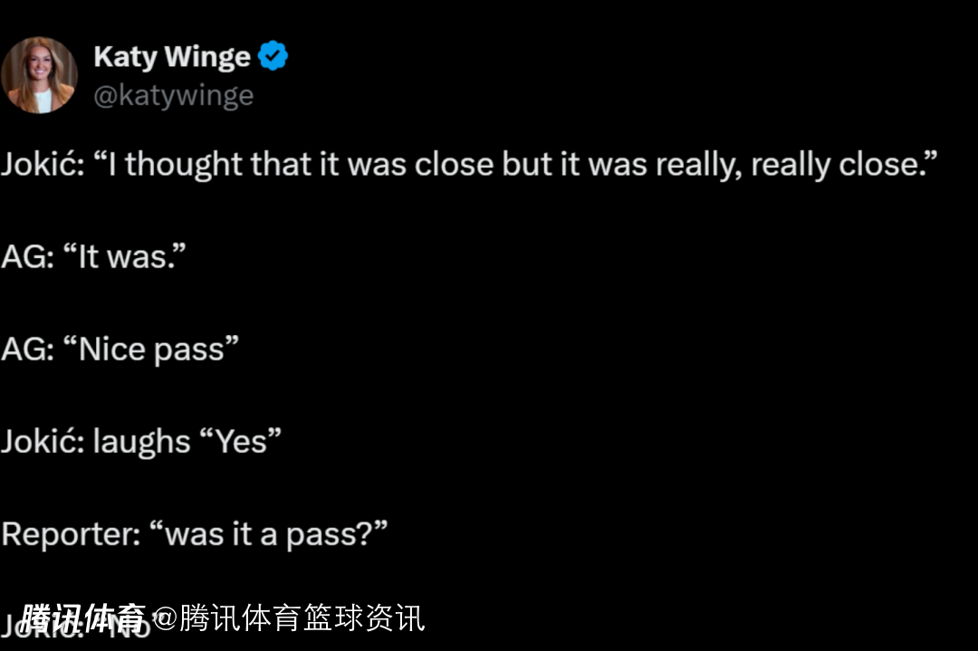 约基奇先是说道:“我觉得那个球真的是毫厘之间,真的好险。”