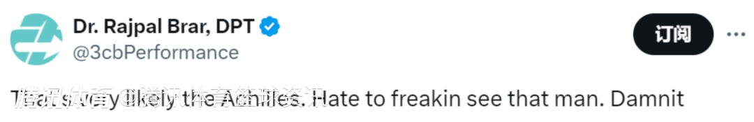随后运动医疗专家Rajpal Brar发推写道:”那很可能是跟腱(受伤了),真不想看到这种情况啊,该死!“