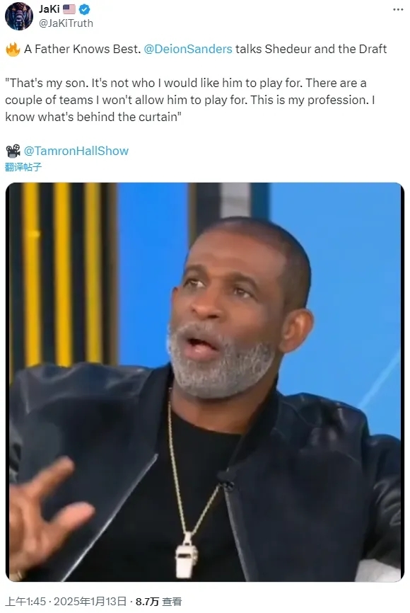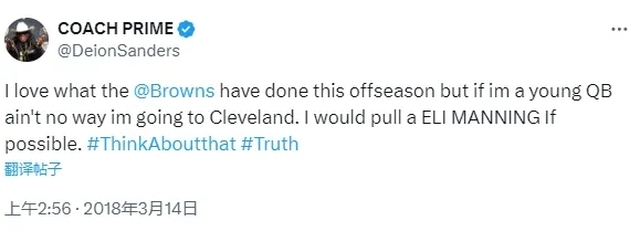 延伸到本文桑德斯家族的案例,其实NFL的子承父业数不胜数,但大多的父亲只是留下美好的祝福,很少看到迪昂-桑德斯这样,希望干预球队来挑选自己的儿子,甚至为儿子钦定新东家。