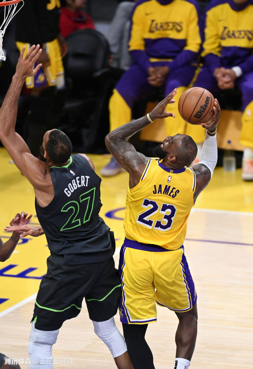 湖人队今天开局便陷入被动,詹姆斯首节仅命中一次上篮。次节比赛中,詹姆斯连续冲击森林狼队的篮下得分,但是对于追分没有任何帮助,湖人队上半场落后森林狼队10分。下半场比赛,詹姆斯在第三节拿到7分带领球队一度反超。末节比赛双方陷入焦灼,詹姆斯仅有7投2中拿到5分,无力帮助湖人队击败森林狼队。在比赛结束之后,詹姆斯落寞离场。