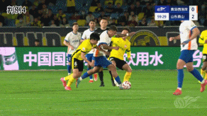 判例四:中超第7轮,青岛西海岸VS山东泰山,比赛第60分钟,青岛西海岸56号队员脚部与山东泰山9号队员腿部有接触,裁判员判青岛西海岸56号犯规,无纪律处罚。VAR介入后,裁判员经在场回看,向青岛西海岸56号出示黄牌。