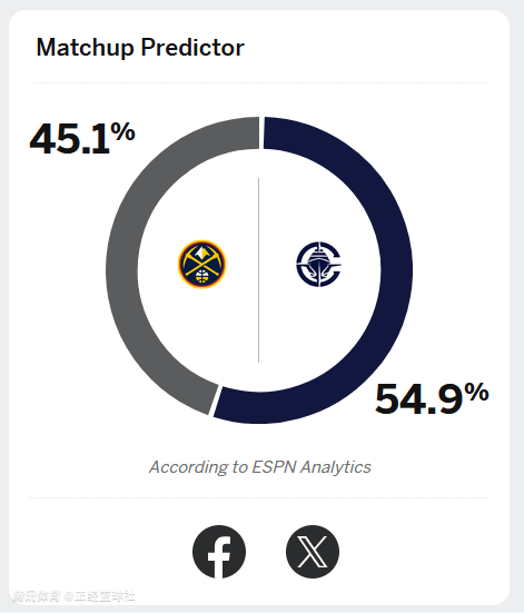 需要说明的是,在本场比赛开打之前,著名媒体ESPN对于本场必须进行了预测,快船队取胜概率为54.9%,掘金队则仅有45.1%。