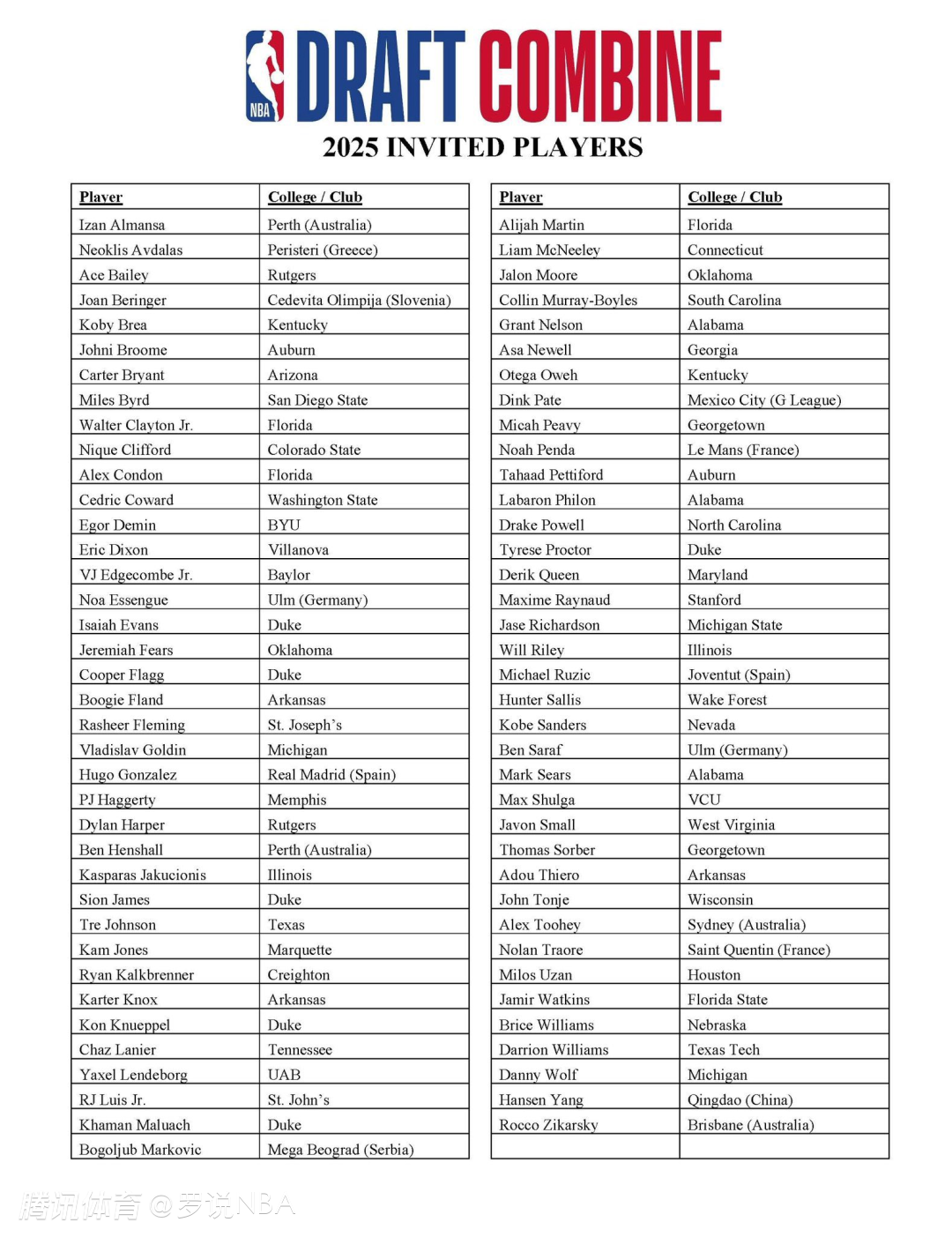 此外,部分在5月10日至12日于温特斯特竞技场举办的G联赛精英训练营中表现突出的球员,将在该训练营结束后获邀参加NBA选秀联合试训。