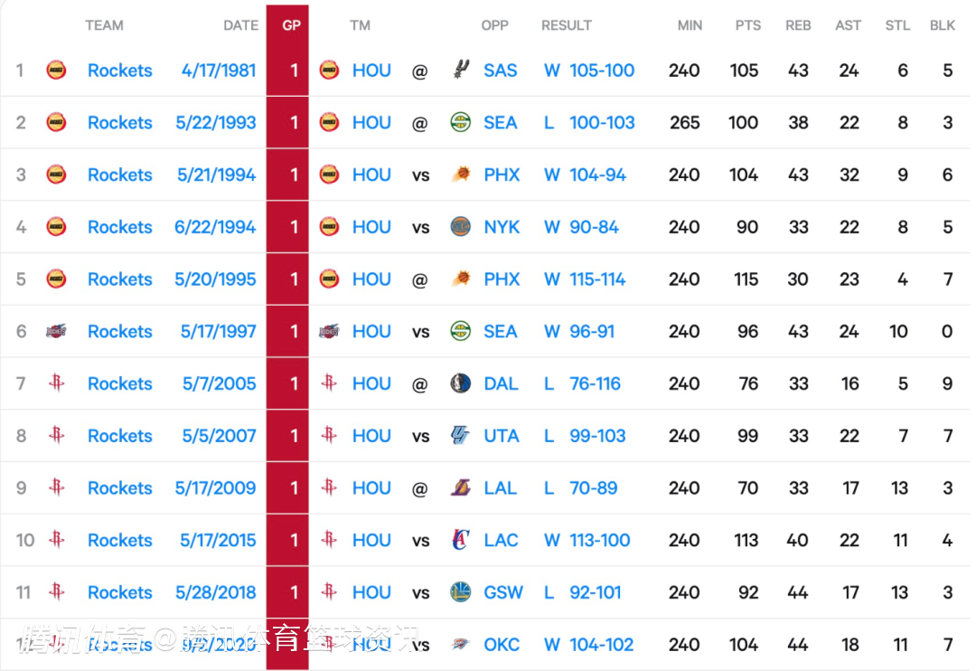 据统计,这是火箭队史第13次抢七,此前12次抢七,他们取得了7胜5负的战绩,他们曾在2018年5月28日和勇士打过一次抢七,当时火箭以92-101不敌对手。火箭最近一次抢七要追溯到2020年9月2日,当时他们以104-102击败雷霆。