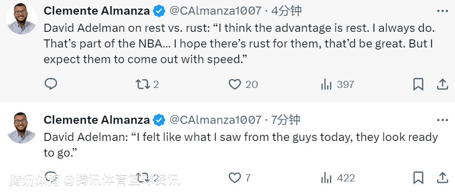 关于球员状态,阿德尔曼说道:“我觉得从今天球员们的状态来看,他们看上去已经准备好上场比赛了。”