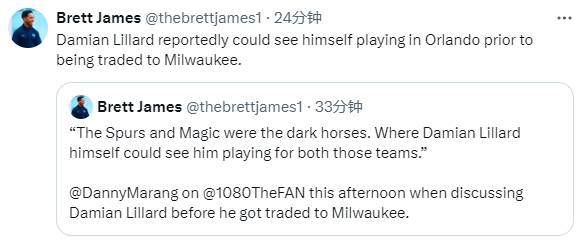 2025-05-07 06:40北京时间5月7日,据媒体人Danny Marang在直播节目中透露,利拉德在被交易到雄鹿之前一度有望加盟马刺或魔术。